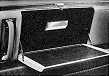 | Two fold-down wood panaled trays on the rear of the front seat of the Fleetwood Brougham are illuminated. Behind each tray is a storage compartment. | ![]() | |